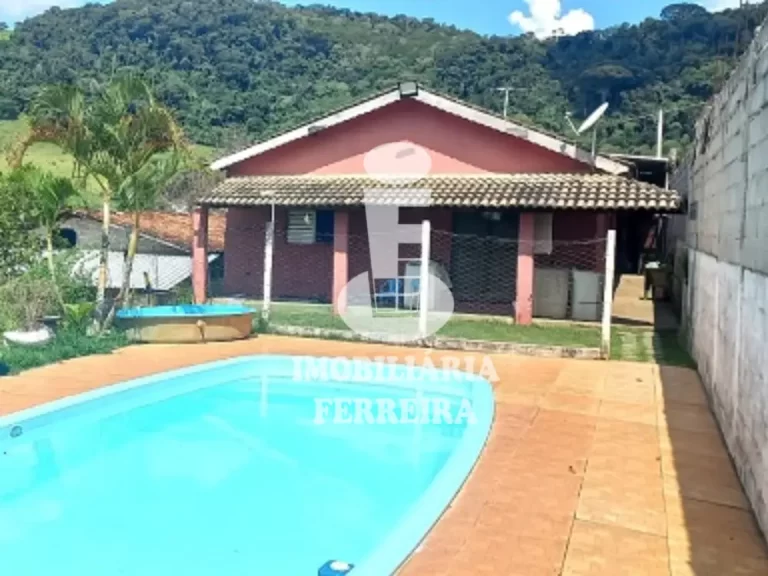 Casa com terreno de 450m² Área construída de 135m² Casa com 2 dormitórios, piscina e jardim