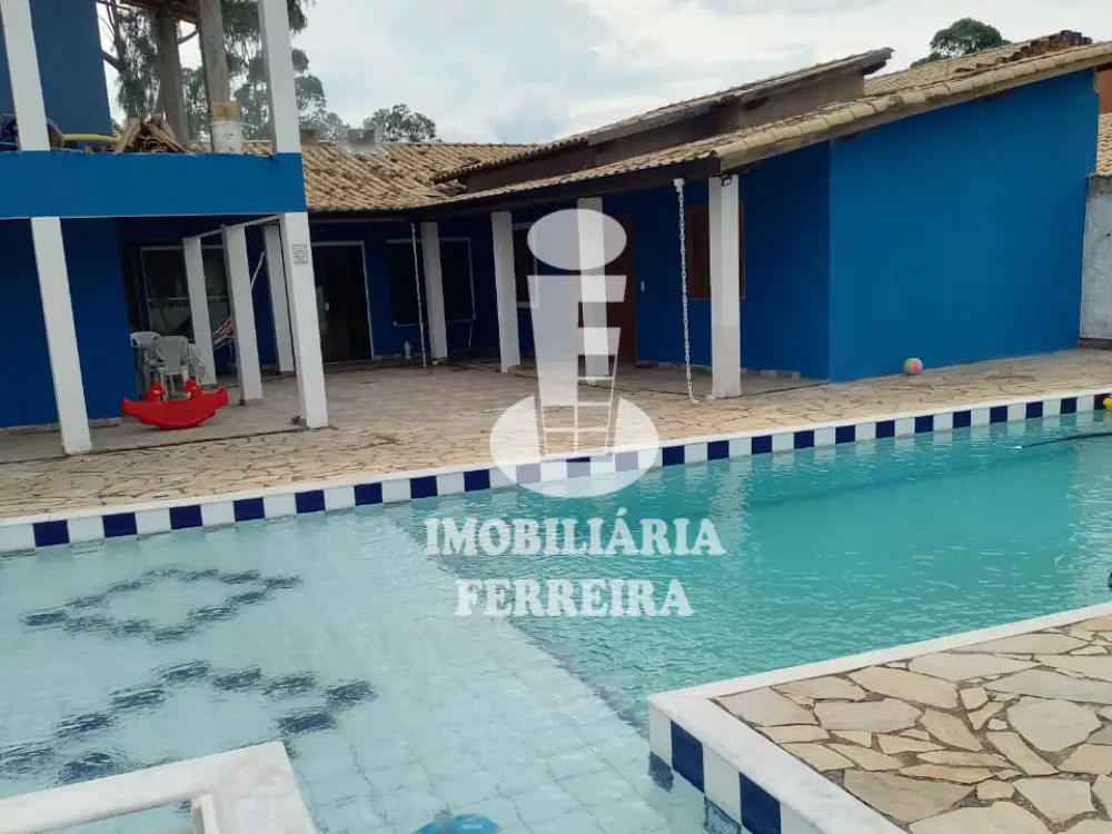 Chácara com 1.200m², casa com 4 dormitórios, sala, cozinha, wc, piscina de alvenaria, mais cozinha externa com churrasqueira, forno e fogão à lenha.